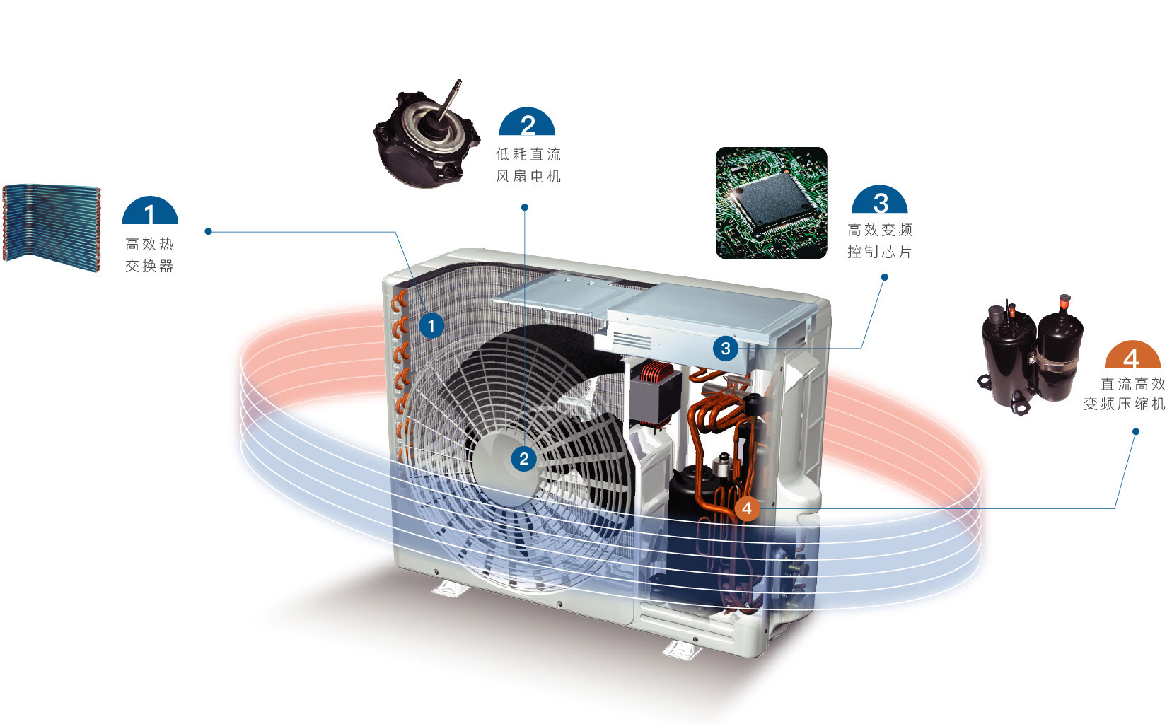日立空調使用的室內風扇電機、室外風扇電機及壓縮機電機均采用直流變頻技術的空調,實現完全直流的變頻,從而達到節能效果。
