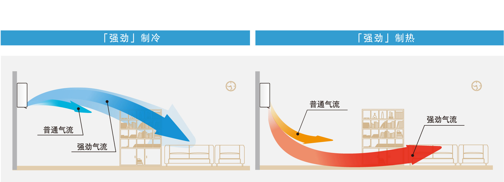 輕松操作「強勁」按鍵,啟動更快速、更舒適的“強勁”運轉模式,壓縮機以高轉速進行運轉,快速強勁營造舒適的室內溫度。