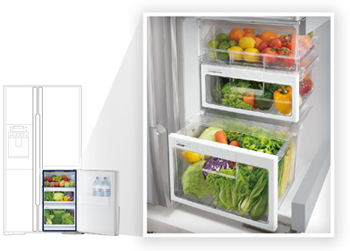 蔬果室內采用封閉抽屜式設計,防止冷風直接吹拂蔬果,溫和保溫冷卻能夠持續維持適度在約90%,實現理想的蔬果保鮮潔凈空間。